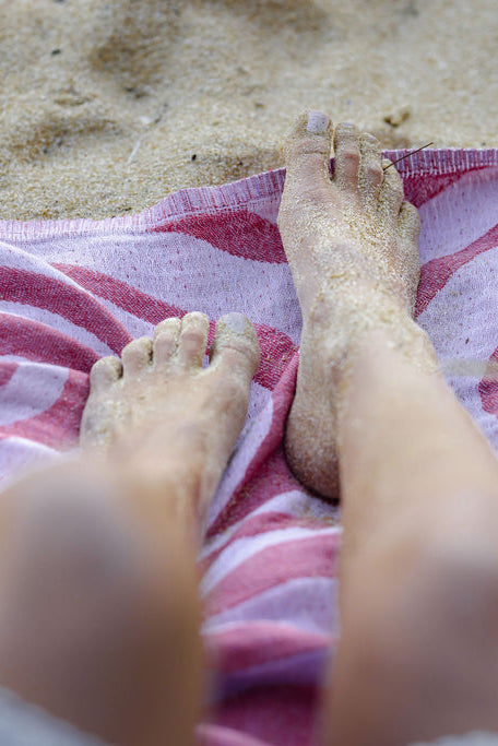 Palm Turkish Towel - Red, Lilac & White